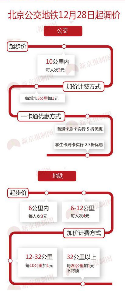 起步6公里内每人次3元,6-12公里每人次4元,12-32公里每10公里加1元,32公里以上每20公里加1元,票价不封顶。(北京市发改委)