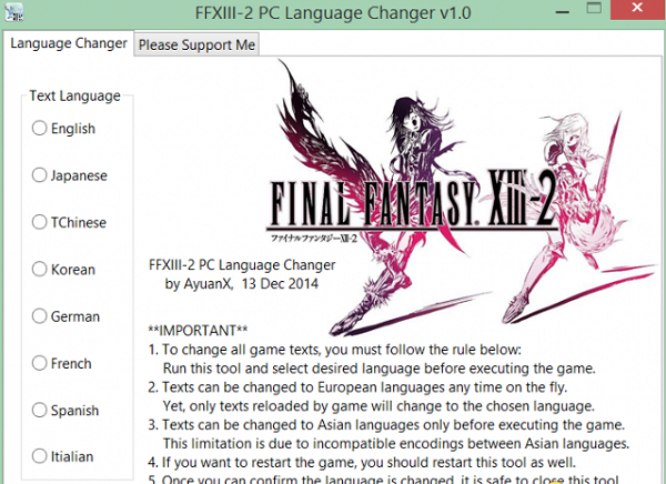 最终幻想13-2语言选择是最终幻想游戏中的一款语言选择工具。该工具可以让玩家自由切换亚洲和欧洲语言,让玩家不用再为语言看不懂,对话听不懂而烦恼。