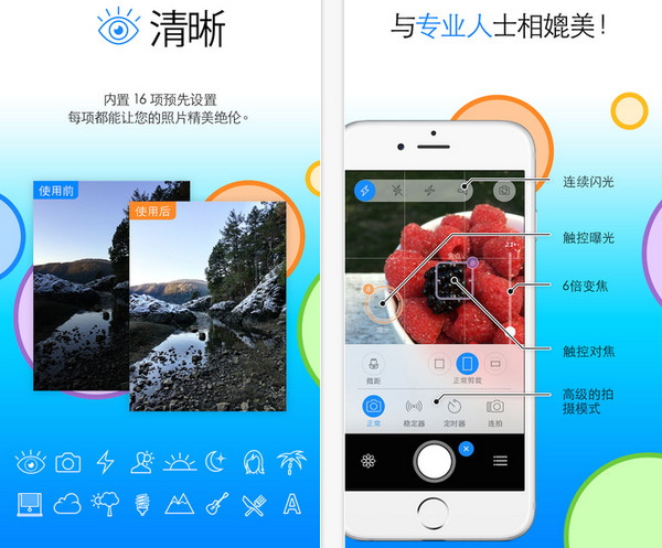 Camera+ iOS版的强大之处在于功能丰富、使用简单。它的一些好用的功能是您的iPhone相机app所没有的,当您开始使用Camera+后,您的照片效果将随时提高。