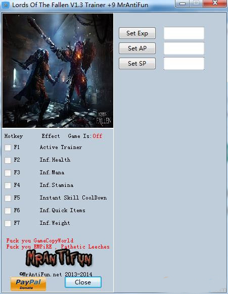 堕落之王九项修改器是一款专门针对《堕落之王》制作的游戏修改器,它由国外玩家MrAntiFun制作,这款修改器拥有无限生命、无限魔力、、无限体力、技能五cd等多项修改功能,喜欢堕落之王的玩家千万不要错过这款修改器~【软件特点】