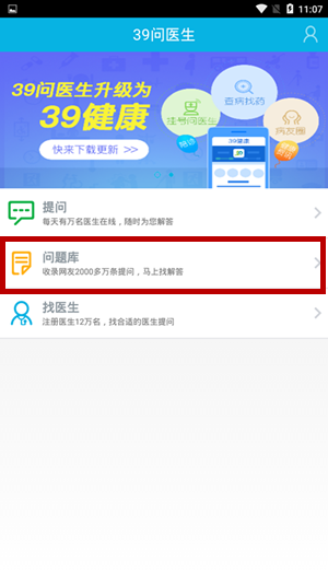 健康问答中心——根据科室把所有医疗问题分成内科、外科、妇产科、男科、儿科、不孕不育、整形美容、肿瘤科、传染科、皮肤性病科、精神心理科、中医科、五官科和急救。39健康问答平台上的16950958个问题,都可以在39问医生这款应用上查看到。分类清晰明确,海量精华问题汇聚。身体哪里不舒服,手指轻松一查就知道。