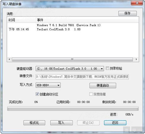 选择我们的U盘盘符,格式化之后,写入。