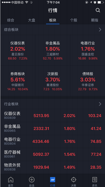 行情报价:综合看盘、大盘指数、板块监测、个股排行,纵览市场全景!