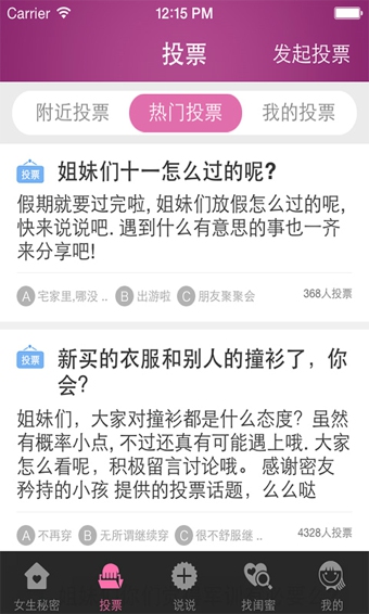 2.新增发起投票功能:如果你面临两难的选择,如果你想知道你是不是大家心目中的班花,如果你调查一个纠结很久的问题,你都可以自己发起投票,让大家告诉你答案哦。