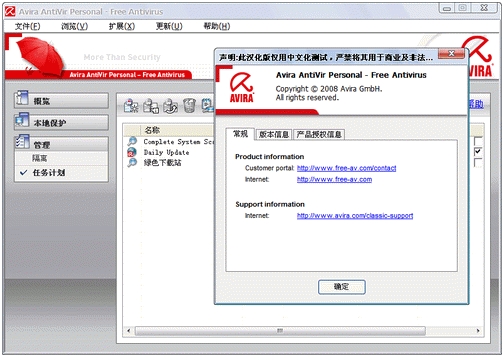 AntiVir是德国著名杀软Avira公司推出的杀毒软件,功能很全面,杀毒迅速准确,获过很多奖项。这是“晓月”的三个汉化版本