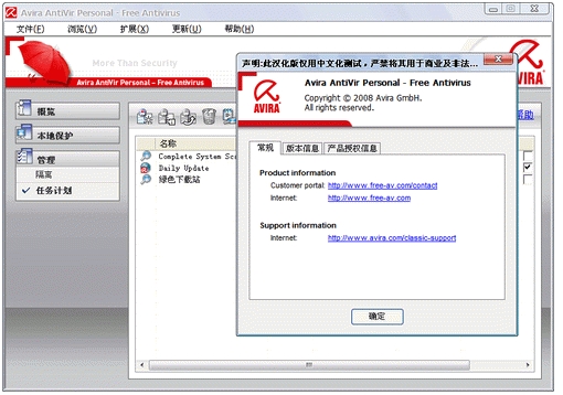AntiVir是德国著名杀软Avira公司推出的杀毒软件,功能很全面,杀毒迅速准确,获过很多奖项。这是“晓月”的三个汉化版本