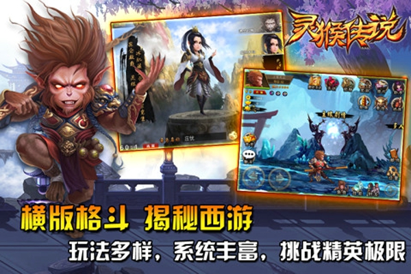 灵猴传说是一款以西游为题材的格斗类游戏,游戏中有渡劫、镇妖塔等许多特色的玩法,玩家在游戏中可以任选一名角色,以真人PK的方式进行战斗,来获取足够的经验,使人物变得更加强大。
