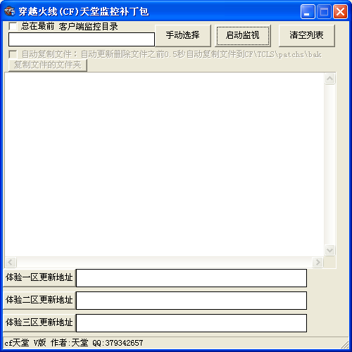穿越火线CF天堂监控补丁包下载 1.0.0.1 最新版 CF天堂监控补丁包是穿越火线游戏中的一款监控补丁包小工具。该补丁包是由玩家制作而成的,它小巧不占空间,绿色无病毒,而且使用非常方便,很容易安装。