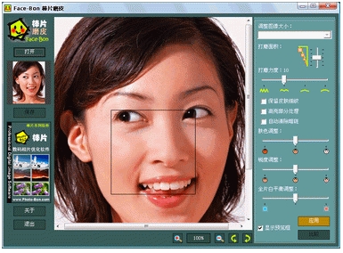 “Face-Bon棒片磨皮软件”可以自动的区分数码照片中的人物和其它景物,在对人像的皮肤进行优化处理的同时,又最低限度的控制了对图像中其它物体的影响。“Face-Bon棒片磨皮软件”对于图像失真压缩后的照片,如在人物皮肤上产生的色块现象,也能够很好的解决,通过进行光滑打磨处理,使图像里人物的皮肤恢复细致平滑。让平凡的数码照片通过后期处理,呈现出专业的封面效果。