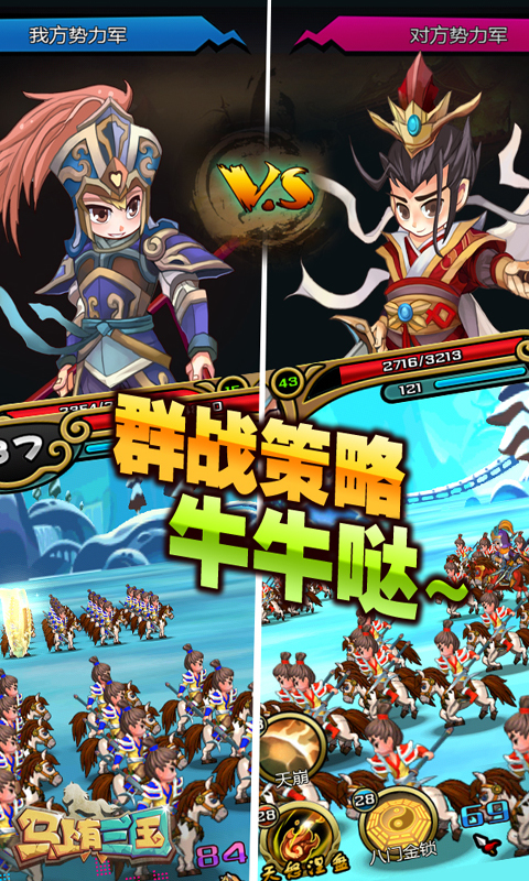 阵型:可以选择分散的阵型,防止敌方突进;也可以选择集中的阵型,快速突进敌方;阵型可升级