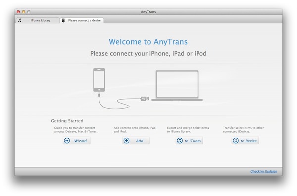 【1】AnyTrans是第一个应用程序(PC和Mac),提供iPhone,iPad和iPod的管理都在一个程序,并以低廉的价格。现在,你可以把音乐,电影,应用程序和任何其他类型的娱乐场所的文件直接在您的苹果设备,包括iphone5,iPad的迷你,iPod touch的5和,因为原来的iPod和iPhone做所有苹果的iDevices。【2】AnyTrans 有相当亲切的操作界面,要导入、导出音乐或应用程序就如同在使用资源管理器一样简单。也可以在 iPhone、iPad、iPod 不同设备之间转移应用程序,如果你还在寻找 iPhone、iPad 的影片转换软件,AnyTrans 也内建影片转换功能可以自动把导入的影片转成最合适的格式,同时在传输的速度上也比 iTunes 快很多。