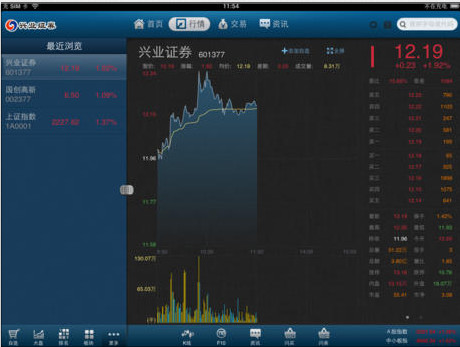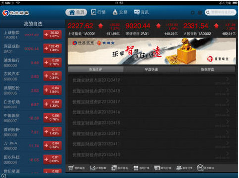 兴业证券优理宝iPad版支持行情即时推送,使您获得最新最快的行情资讯,为投资盈利抢占先机。
