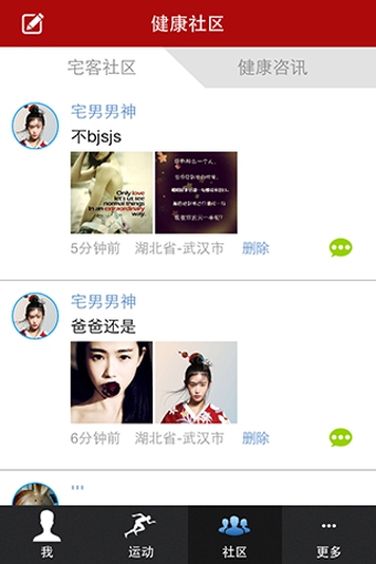 2、用户通过宅客运动跟好友分享自己的健身减肥体验。
