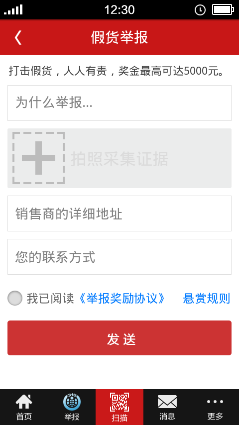 3、功能更新:数据防伪查询功能,扫描功能,举报功能,产品搜索功能等;