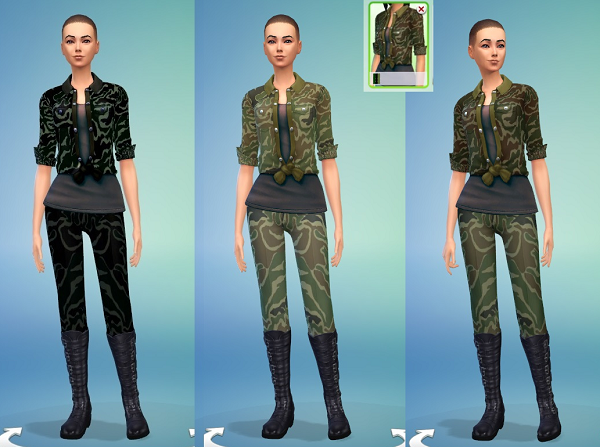 模拟人生4女式迷彩军装;新增一款女式迷彩军装,用的EA游戏本身的模型,但是是一件全新的物品,喜欢的玩家不妨一试。【使用方法】