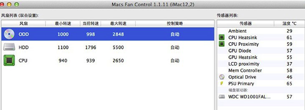 这是一款Mac平台的风扇运转监控及转速控制工具,可以帮助我们监控当前的各硬件(CPU、硬盘等)的温度状态及风扇运转状态,我们可以根据这些实时数据控制风扇的转速,非常方便。