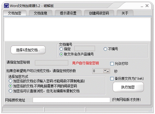 Word文档加密器是通过加密使文档不经过允许非法传播和未经授权无法打开!适合电子书和电子教程加密、课件加密!用户无法提取文档中的图片和文字! 可以将doc打包成exe格式文件,用以加密DOC文件、RTF格式文档,绝非office自带的加密方法,本系统有以下特色----
