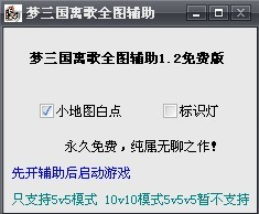 梦三国离歌全图辅助 v1.2免费版 梦三国全图辅助器是梦三国游戏中的一款全图辅助,该游戏辅助将对玩家全面开放并永久免费使用。该工具使用非常方便,且又是免费、绿色的,也不释放文件,有需要的玩家可以下载。
