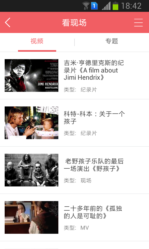 — 手机上看音乐现场:音乐节、纪录片、访谈花絮,每天都有精彩推荐;