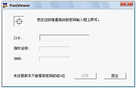 绿色软件,无需安装用法把程序中的准星拖到密码窗口即可以。可以用于找回密码等功能。注册版本可以使用全部功能