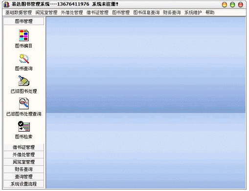 本系统主要面向图书馆、电子阅览室、企业、单位、大中专院校,中学。从图书的编目、借书证办理到读者借书、还书、续借、读者逾期罚款系统可自动计算,读者逾期查询,借阅证充值、挂失、解挂失、注销,电子阅览室管理,详细的财务管理,旧书处理,系统已集成了标准图书分类信息,权限管理分明,保证了数据的安全可靠。通过使用本系统可以使繁杂的图书管理工作简单化,解决了图书难管理、易丢失的难题,大大提高了图书管理员的工作效率。系统界面美观大方,操作方便,简洁,系统集成图书标准分类信息,财务管理使您的收支一目了解。所有数据均可导出到Excel(借阅证卡片为磁卡、条形卡),系统可接条码扫描设备