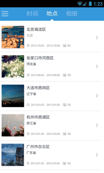 照片按时间、地点智能整理,相册可设置公开、私密权限