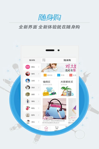 爱购物就来随身购,省钱潮流第一app应用!您想要的商品,我们这里都有折扣!每天为亲们精心准备九块九包邮商品,性价比巨高,品类众多,还有更多秒杀商品哦!