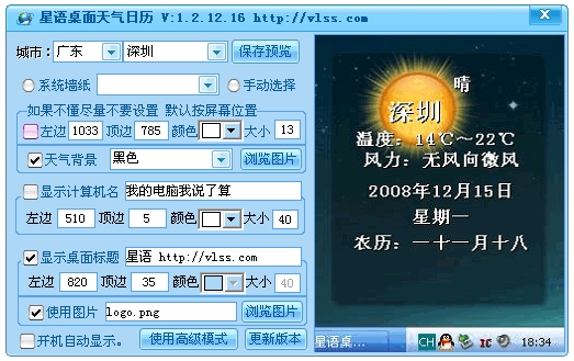 星语桌面天气日历 不占用任何系统内存与CPU把天气预报和日期设置在桌面上
