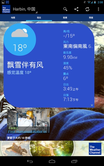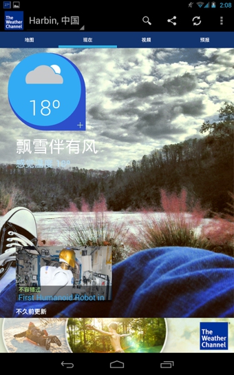 The Weather Channel(天气预报)是一款安卓手机的天气预报软件,Weather Channel来自美国天气官方之手,其他的都还好,不想吐槽什么,但这个广告条实在碍眼。就是支持的语言很多,还不错。
