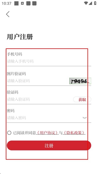 4、于用户注册页面,填入信息,勾选协议,随后点击“注册”按钮,便可完成注册流程。
