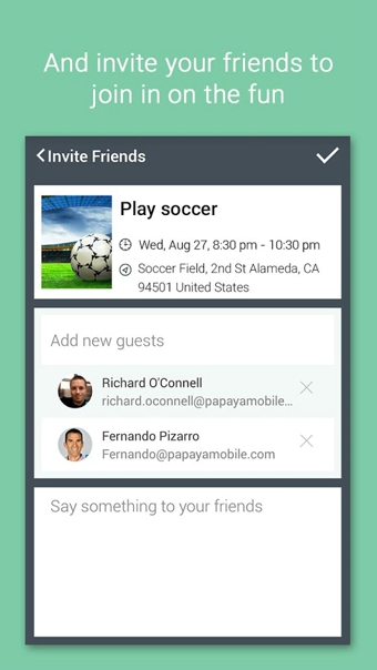 - 你的Facebook好友的公共事件将自动推荐到你的日历之上,这样你就不会错过和他们一起找乐子了!