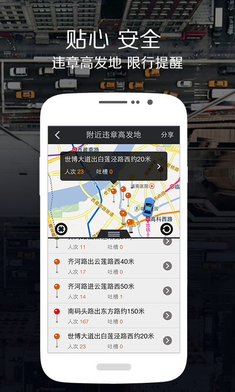 【贴心】查询附近的违章高发地,让您对周围的违章状况了如指掌;
