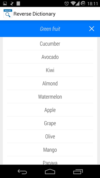 例如,如果您忘记了词为“苹果” - “梨”进入绿色果品将返回的话,包括“牛油果,苹果”和列表