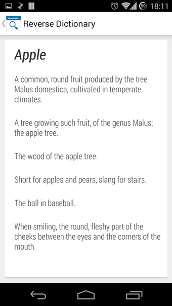 反向字典功能完美地以及标准的字典也一样,只需输入一个字,而不是一个短语,并会见了所输入的单词多个定义。