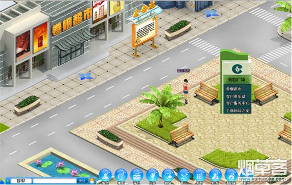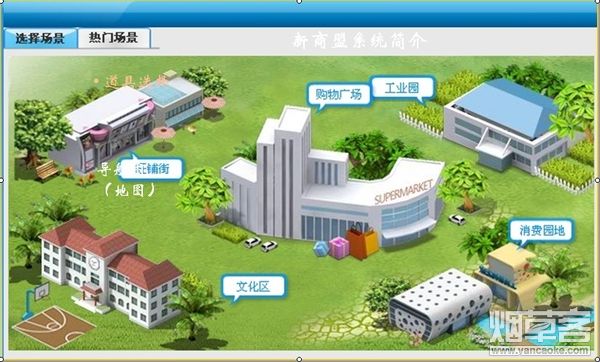 A)购物广场设置有导航牌,用户可以通过点击导航牌快速切换场景,比如零售户点击导航牌的【卷烟超市】,即可直接进入【卷烟超市】;