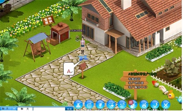 B)屏幕下方设置有快捷菜单,由角色、地图、背包、任务、消息、留言、周刊、好友、我的家、退出等快捷功能组成,点击相应按钮即可快速跳转到相应功能。