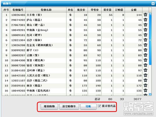 目录订单第一步:零售户首先选择卷烟,被选中的卷烟会以蓝色标示;