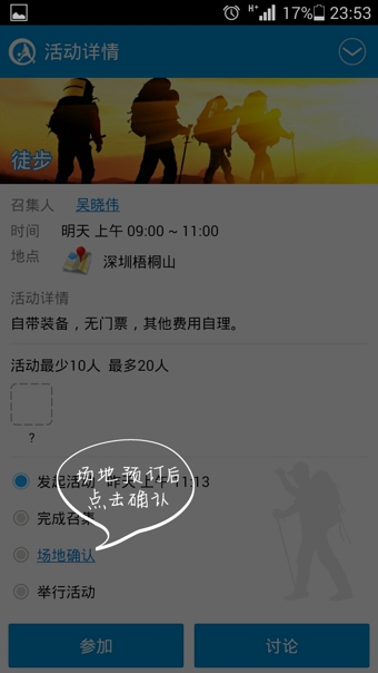 约球会安卓版是一款安卓手机的运动社交软件,这款软件不是说约你去看球或者看比赛什么的,而是召集一些小伙伴一起运动,比方说你可以设定打篮球这个活动,然后看看周边有没有一起来的。