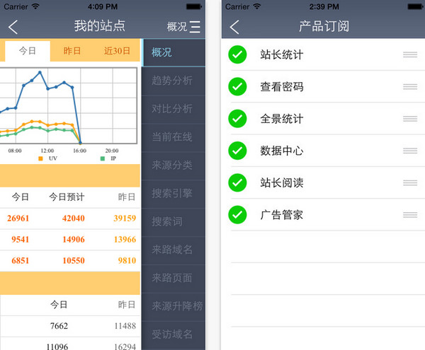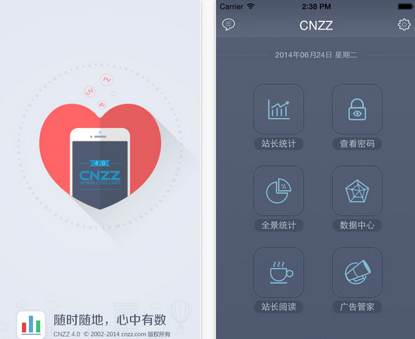 CNZZ手机客户端包含CNZZ站长统计、全景统计分析,供广大站长随时随地手机查看网站数据。支持网站概况、历史趋势、来源来路、搜索引擎、搜索词、访客分析等。