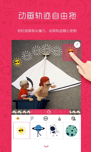 【动画贴纸-让你的视频萌萌哒】上百款精美动画贴纸,让你拍出来的视频萌萌哒。小猫、小王子、外星人陪你玩转不一样的视频!