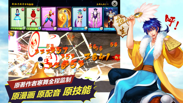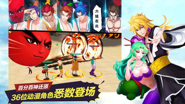 游戏的画面音效采用了原汁原味的《十万》画风,人物角色都非常的经典,相信看过动画版本的玩家一定很熟悉,游戏中各种惨死的葫芦娃也会和你一起上阵,而且原生 版本的音效一下子就可以戳中笑点。本作中共有三个角色可以选择,每一个战斗都会有一小段的对话或是场景剧情交代的,这也使得游戏很具有连贯性,有时候还会出现弹幕哦,喂,这次真的是有弹幕哦,不要被惊呆了。