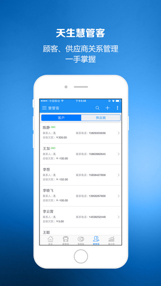 3. 慧管客:便捷查询、维护和管理供应商以及客户相关信息;