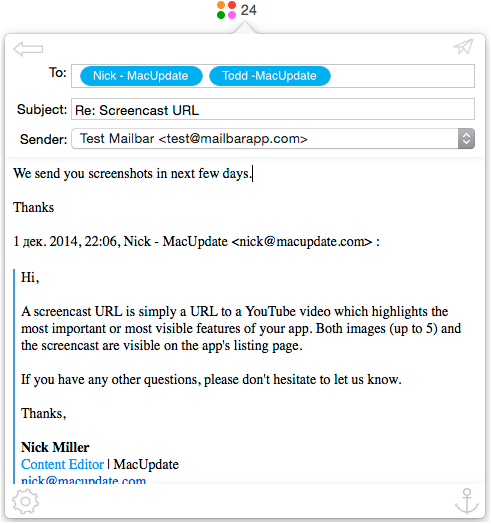 1、光线和谨慎的应用程序设计为在后台运行,并显示新的电子邮件的数量旁边的菜单栏图标。2、由于MailBar,您可以监控和管理多达四个不同的邮箱。
