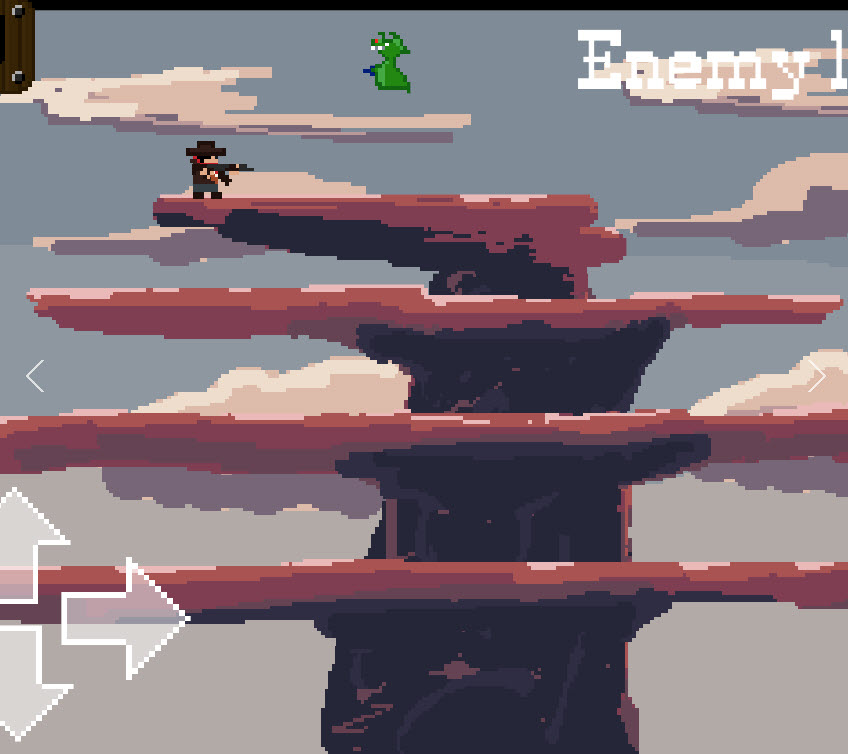 西部外星人 Alien West是一款有一定难度的射击类对抗游戏。你是一个普通的西部牛仔。一切生活依旧平淡。可是,有一天你心爱的妻子被外星人绑架了!你并不是无力的,你准备在云端和外星人决斗!谁先被击下云端算谁输!