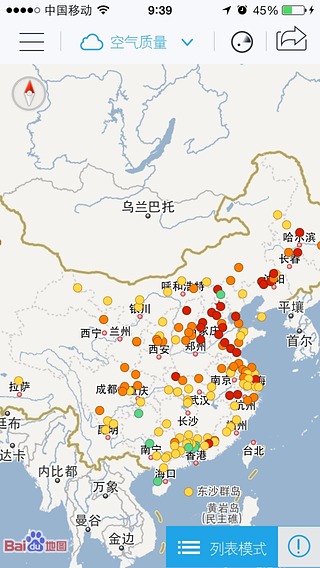 全国空气状况尽收眼底。随时查询190个城市近1000个空气质量监测站空气质量指数和污染物浓度
