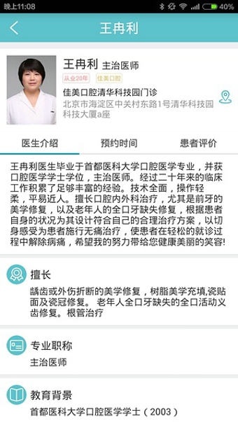 【要好而且要便宜】使用好牙医预约,到店立享现金优惠。 据北京市卫生局数据显示,北京市2200万常住人口中超过90%患有不同程度的口腔疾病。北京市各级口腔医院、诊所,年诊疗人次超过1000万。但是仍有数以万计口腔疾病患者苦于寻找最适合自己的医生,苦于排队挂号,苦于求医无门。好牙医以“帮助患者轻松预约好牙医”为使命,致力于帮助广大口腔疾病患者解决烦恼。我们借助互联网技术覆盖全北京市的牙医资源,为广大口腔疾病患者带来全新的就诊体验。从分诊、咨询到就医、评价服务,我们努力为每一个患者打造一个专业、贴心、充满关怀的一条龙服务体系。帮助所有患者轻松解决口腔问题,是我们的终极目标!