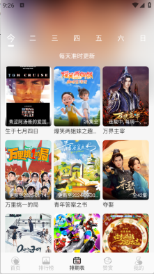 5、排期表会展示每日影视的更新情况,大家能够及时关注感兴趣的影视。