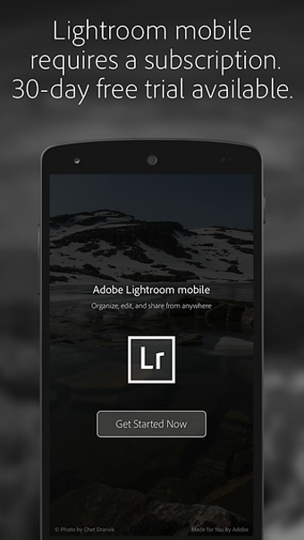 或者,你也可以下载并注册免费的30天试用Lightroom移动版。在过了30天之后,如果需要继续使用Lightroom移动版时便将需要Creative Cloud的用户资格。