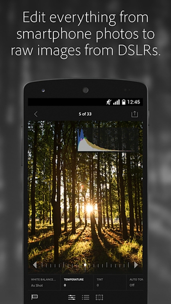 随时随机在你的智能手机上编辑并组织图片。加强任何手机上的图片效果,从手机照片到原张单反相机照片,利用强大的工具进行处理。自动同步你的手机编辑至你桌面上的Lightroom 5。你可以轻松分享至社交网站上,使用Lightroom移动版,你的照片将变得更加出众。