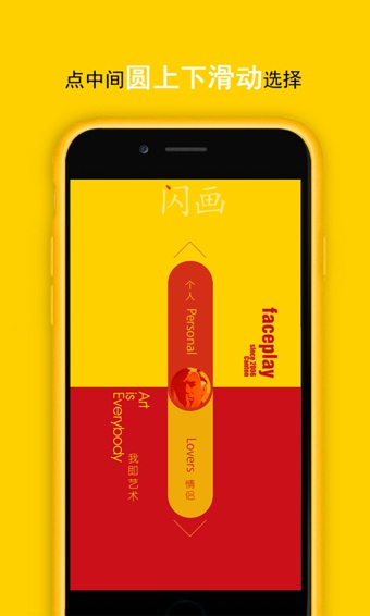 「Faceplay闪画」是一款针对真人图片艺术化处理,一键完成唯美肖像画的APP应用软件。涵盖了波普艺术系列、时尚插画系列、婚纱油画系列等多款风格独特的肖像画。操作简单,只需要双手左右滑动,就可以完成一幅艺术画的创造,跟imadeface和uface的操作一样简单。就算你没有绘画的基础,也能轻松的创造出一副你自己的专属唯美肖像画。你可以将你的图片用来做你的手机壁纸、通讯录头像,也可以把它印到你的T恤、卫衣、马克杯、环保袋、和手机个性彩壳上,为自己的他(她)创造一款属于自己的艺术照片吧!